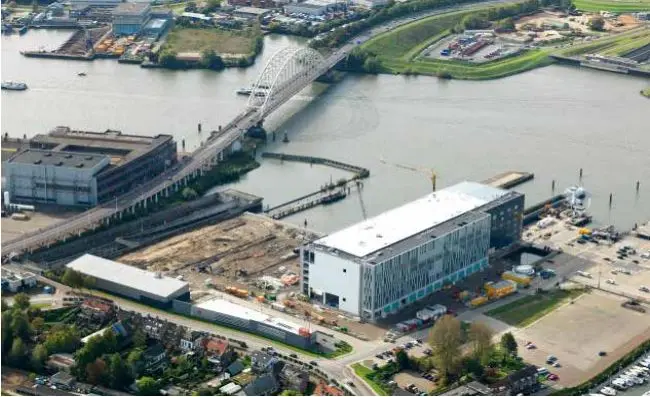De hal is uitgerust met twee bovenloopkranen met elk een hefvermogen van 2x25 ton. De kranen kunnen buiten de hal rijden door middel van een uitklapbare kraanbaan van ongeveer 25 meter. Om dit mogelijk te maken is er een hefdeur ontwikkeld die boven het dak in elkaar schuift en daarmee een netto opening realiseert 32x30,5 meter. Op het omliggende terrein zijn 500 parkeerplaatsen, een portiersloge en een trafogebouw gebouwd. Om dit te kunnen realiseren zijn de constructies van bestaande scheepshellingen en steigers gesloopt, is de bestaande schepenlift aangepast en werd er een nieuwe damwandkade gebouwd. Het totale terrein heeft een oppervlakte van ca. 26.000 m².