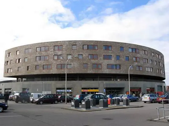 Dit opvallend vormgegeven winkelcentrum ligt in de Vinexwijk Delfgauw. De grote cilinder bestaat uit een onderbouw met gevels van glazen bouwstenen met een winkelgalerij. Via een hellingbaan kunnen de bewoners van de woningen boven de winkels voor hun eigen deur parkeren, waar een rond lopende weg langs loopt. IOB heeft voor dit project de constructieve engineering verzorgd tijdens de fasen voorlopig ontwerp tot en met realisatie.