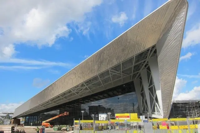 De overkapping van de perrons bestaat uit 28.000 vierkante meter aan glasplaten en 10.000 meter roestvrij staal. Ongeveer 10.000 vierkante meter van het glas is voorzien van ca. 130.000 zonnecellen. De opgewekte stroom wordt oa. gebruikt voor de voeding van de roltrappen en de verlichting. De delen van de sporenkap waar geen glas in opgenomen is, zijn bedekt met RVS.