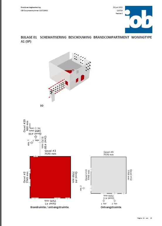 Omdat tijdens de Quick Scan Brandveiligheid die IOB heeft opgesteld naar voren was gekomen dat er een risico op brandoverslag aanwezig was, heeft de opdrachtgever IOB gevraagd een brandoverslagberekening op te stellen. Door middel van een dergelijke berekening kan inzichtelijk worden gemaakt in hoeverre de kans op brandoverslag een onveilige situatie met zich mee brengt.