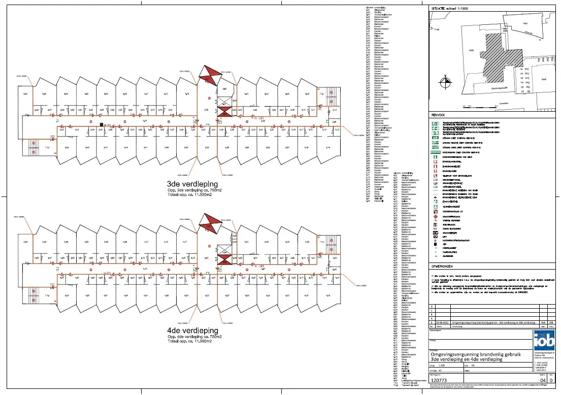 Onze opdrachtgever heeft IOB gevraagd de tekeningen voor het brandveilig gebruik op te stellen. Deze tekeningen dienden op aangeven van de brandweer te worden ingediend, omdat in het verpleeghuis nachtverblijf wordt verschaft aan meer dan 10 personen (in het kader van verzorging). IOB heeft de inspectie op locatie verzorgd, de brandveiligheidselementen opgenomen, de tekeningen brandveilig gebruik opgesteld en de omgevingsvergunning via omgevingsloket.nl ingediend.