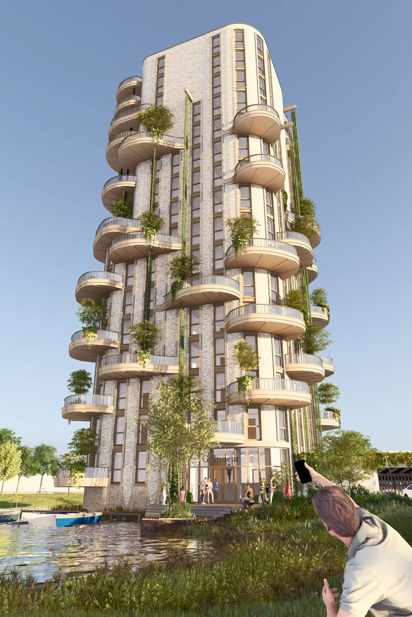 De toren biedt een mix van appartementen, die optimaal gebruikmaken van lichtinval en uitzicht. Duurzaamheid staat centraal, met doordachte keuzes in materialen en groenvoorzieningen die bijdragen aan een prettige leefomgeving.